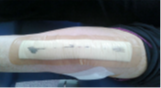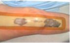• het verband tot aan de plakranden verzadigd is met wondvocht, foto hieronder;