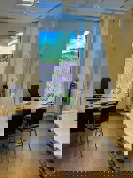 De eerste in Nederland zijn wij met deze speciale raamfolie met lichttechniek. Deze raamfolie is geplaatst in de vijf inpandige spreekkamers van de polikliniek oncologie. Hiermee halen we als het ware het daglicht naar binnen.